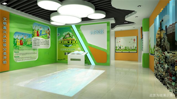 為了更好地寓教于樂,該基地在規(guī)劃設(shè)計上頗為用心。序廳里,通過弧形有機玻璃主題墻展示城市垃圾的藝術(shù)造型,將垃圾圍城的危機感,潛移默化傳遞給每一位參觀者。