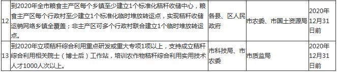 (八)秸稈綜合利用科技支撐工程。開展秸稈綜合利用關(guān)鍵技術(shù)、共性技術(shù)產(chǎn)學研聯(lián)合攻關(guān)。優(yōu)先支持秸稈綜合利用相關(guān)的院士(博士后)工作站、省級重點實驗室等創(chuàng)新創(chuàng)業(yè)平臺和團隊項目的申報和立項。到2020年立項秸稈綜合利用重點研發(fā)或重大專項1項以上,支持成立秸稈綜合利用相關(guān)院士(博士后)工作站,培訓農(nóng)作物秸稈綜合利用實用技術(shù)人才1000人次以上。(牽頭單位:市科技局、市農(nóng)委;配合單位:市質(zhì)監(jiān)局)