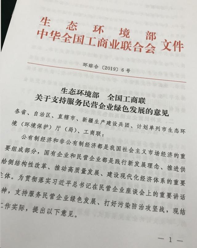 今天,生態(tài)環(huán)境部和全國工商聯(lián)簽署了“關(guān)于共同推進(jìn)民營企業(yè)綠色發(fā)展 打好污染防治攻堅(jiān)戰(zhàn)”的合作協(xié)議,聯(lián)合出臺《關(guān)于支持服務(wù)民營企業(yè)綠色發(fā)展的意見》,將通過健全市場準(zhǔn)入機(jī)制、完善環(huán)境法規(guī)標(biāo)準(zhǔn)、規(guī)范環(huán)境執(zhí)法行為、強(qiáng)化科技支持服務(wù)、完善環(huán)境經(jīng)濟(jì)政策措施,支持民營企業(yè)提高綠色發(fā)展水平、營造公平競爭市場環(huán)境。