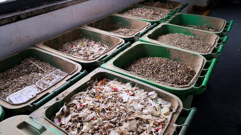 經(jīng)過前期篩檢,混在濕垃圾中的干垃圾被分揀出來,并按照大小分別收集,再運至專門的單位處置。隨著源頭分類意識的提高,濕垃圾中的雜質(zhì)會越來越少。