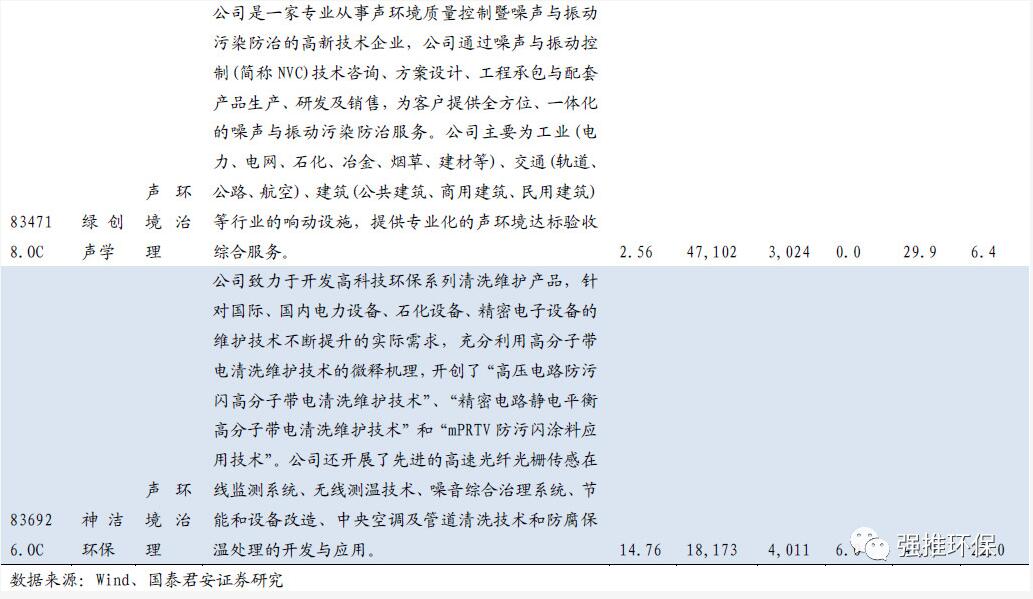 ⑤聲環(huán)境治理:綠創(chuàng)聲學(xué)(噪聲與振動污染防治)、神潔環(huán)保(噪音治理、帶電清洗)。