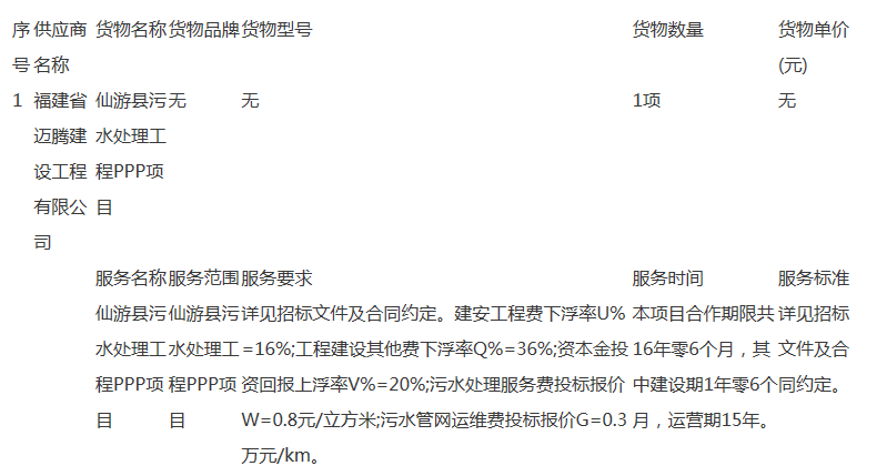 原標(biāo)題:福建仙游污水處理工程PPP項(xiàng)目預(yù)中標(biāo)結(jié)果公告