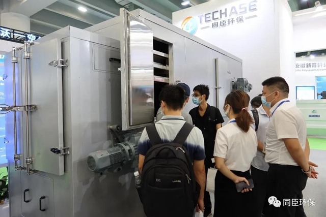 同臣低溫干化是通過(guò)注入循環(huán)、溫暖、干燥的空氣的方式將疊螺式污泥脫水機(jī)、板框壓濾機(jī)、超高壓壓榨機(jī)等污泥脫水設(shè)備所產(chǎn)生的污泥和泥餅中的水分蒸發(fā)帶走,達(dá)到污泥減量化的污泥干化機(jī)。這次是它第一次在廣州亮相,立刻引起大家的興趣,紛紛前來(lái)參觀。