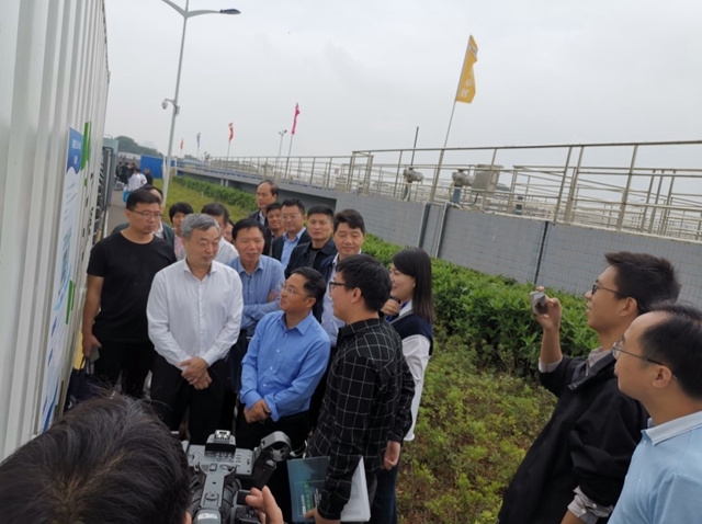 啟動(dòng)儀式后,各位領(lǐng)導(dǎo)專家考察了本次生活污水一體化設(shè)備測(cè)試活動(dòng)地點(diǎn)--長(zhǎng)沙市聯(lián)泰水質(zhì)凈化有限公司(岳麓污水處理廠),易廳長(zhǎng)、江處長(zhǎng)蒞臨安力斯環(huán)境賽博集裝箱一體化設(shè)備現(xiàn)場(chǎng)進(jìn)行參觀指導(dǎo),并詢問了安力斯高級(jí)工藝工程師羅工一些具體的技術(shù)指標(biāo)問題,對(duì)安力斯的產(chǎn)品和技術(shù)給予了充分的肯定。