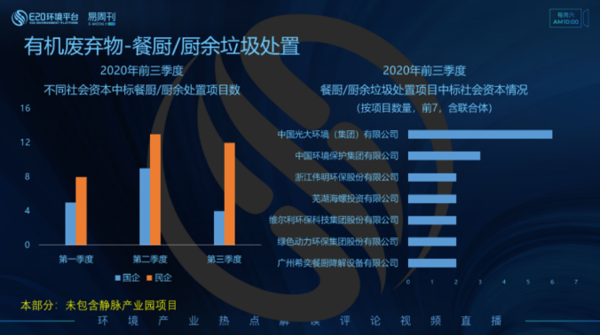 從中標社會資本維度分析,2020年前三季度中標餐廚/廚余處置項目的社會資本主要為民營企業(yè)。