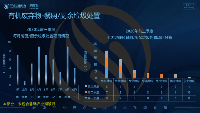 左圖為2020年前三季度每月餐廚/廚余垃圾處置項目的中標情況,其中第一季度中標12個項目,第二季度中標22個項目,第三季度中標16個項目。