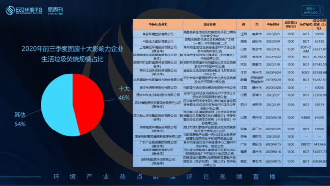 將固廢十大影響力企業(yè)2020年前三季度的生活垃圾焚燒業(yè)績進行匯總,其占整個市場的46%。右表所展示的為2020年前三季度生活垃圾焚燒項目單體設計能力在1000噸/日-2000噸/日的項目列表。