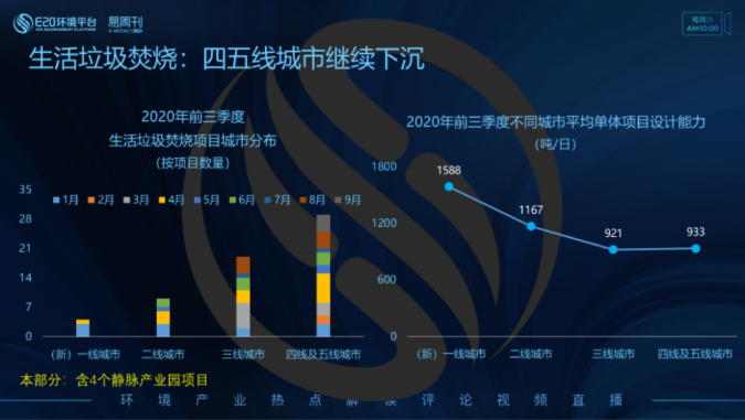 延續(xù)歷史趨勢(左圖),生活垃圾焚燒項目的釋放仍集中于三、四及五線城市,截至9月底,一線城市仍無新增生活垃圾焚燒項目,(新)一線城市及二線城市新增量僅分別為4個和9個。
