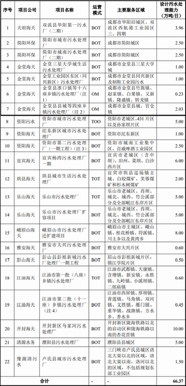 污水處理業(yè)務(wù)主要集中在四川省成都市雙流區(qū)、簡(jiǎn)陽(yáng)市、金堂縣、資陽(yáng)市、宜賓市及所屬珙縣、樂山市、峨眉山市、雅安市、眉山市彭山區(qū)、巴中市平昌縣、江油市等地。