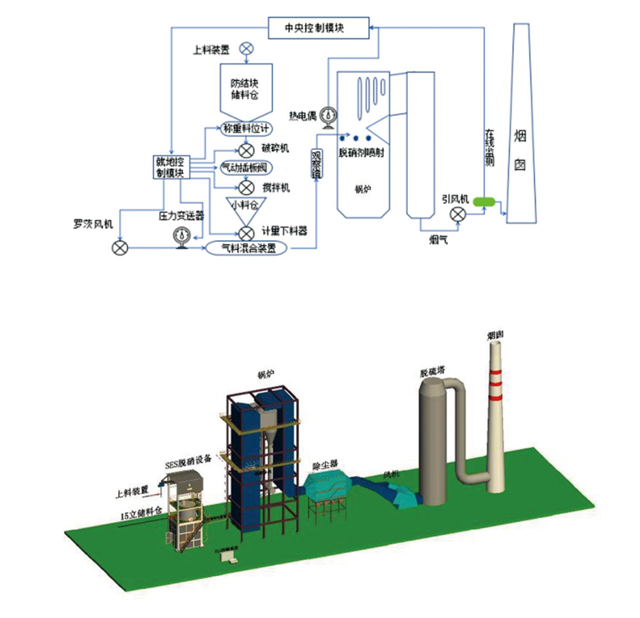 PSCR是指在爐膛或煙道750°C-1250°C (850°C-950°C 最佳)溫度區(qū)域開(kāi)孔,通過(guò)SES設(shè)備輸進(jìn)PSCR固態(tài)高分子脫硝劑,與煙氣充分混合后,分解出活性酰胺基團(tuán)與NOx反應(yīng)生成CO2、Nz和微量H20,從而去除煙氣中的NOx。
