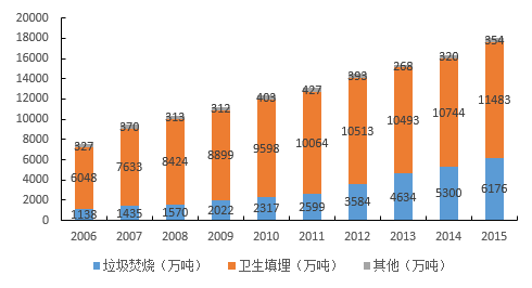 由于焚燒廠用地面積只占到垃圾衛(wèi)生填埋場(chǎng)的二十分之一,甚至更少,同時(shí),垃圾焚燒能以最快速度實(shí)現(xiàn)垃圾無(wú)害化、穩(wěn)定化、減量化、資源化的最終處理目標(biāo)。所以,在人口密集、經(jīng)濟(jì)發(fā)達(dá)、土地資源稀缺的大中城市的發(fā)展背景和需求下,垃圾焚燒處置實(shí)現(xiàn)了快速增長(zhǎng)。