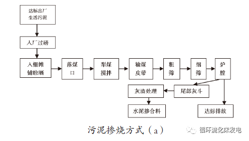 方式(a):生活污泥經(jīng)污水處理廠脫水后運送至公司現(xiàn)場進(jìn)行攤鋪晾曬,然后經(jīng)輸煤系統(tǒng)與原煤混合入爐充分燃燒,從而達(dá)到資源化處理的效果,有效利用垃圾、污泥中的剩余熱值,減少原生垃圾及污泥因填埋對環(huán)境造成的持續(xù)污染問題。其污泥摻燒方式如圖1(a)所示。