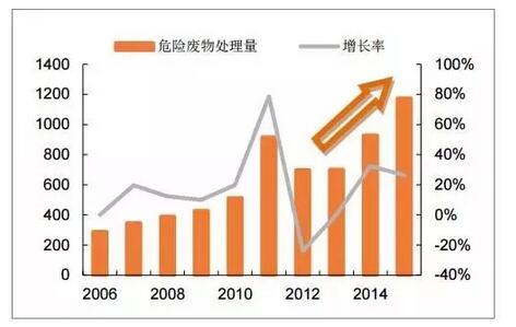 危險(xiǎn)廢物處理量呈快速增長(zhǎng)趨勢(shì)