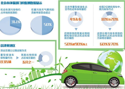 北京市環(huán)保部門的監(jiān)測(cè)數(shù)據(jù)顯示,機(jī)動(dòng)車源污染物約占本地排放源的31.1%,在重污染天氣期間甚至?xí)^(guò)50%。