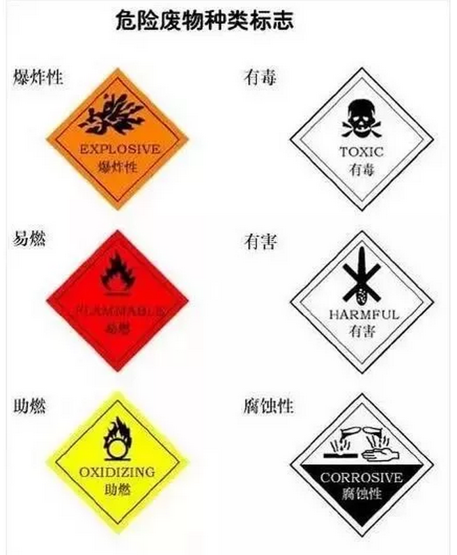 上圖中的危險(xiǎn)廢物類別根據(jù)實(shí)際張貼相應(yīng)圖標(biāo)或印制相應(yīng)圖標(biāo),其有: